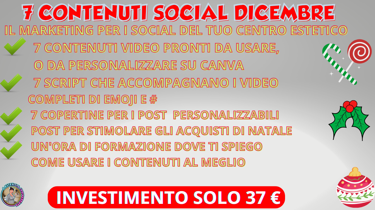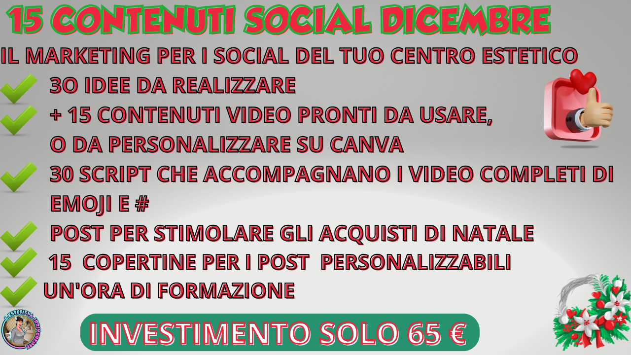 🎄 Dicembre è finalmente tra noi, il mese magico che avvolge ogni attività commerciale con la sua atmosfera natalizia. Per il tuo centro estetico, è un periodo cruciale in cui si creano promozioni e listini di Natale, un momento in cui ogni dettaglio deve brillare come le luci dell'albero. La presenza sui social è la chiave per far percepire alle clienti che il tuo centro è la scelta migliore per i regali natalizi. Ricorda, chi non mostra, non vende.