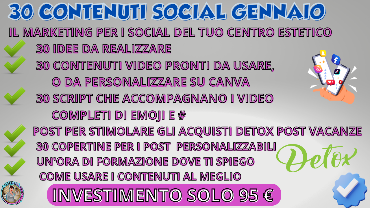 👉 Evita che gennaio diventi un mese vuoto. Trasformalo in un trampolino di lancio per il tuo centro estetico. Acquista ora i contenuti e inizia a distinguerti.