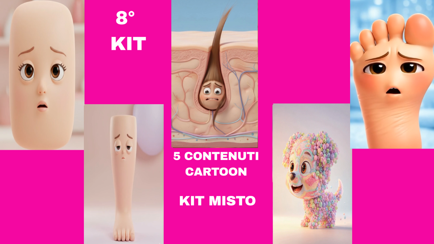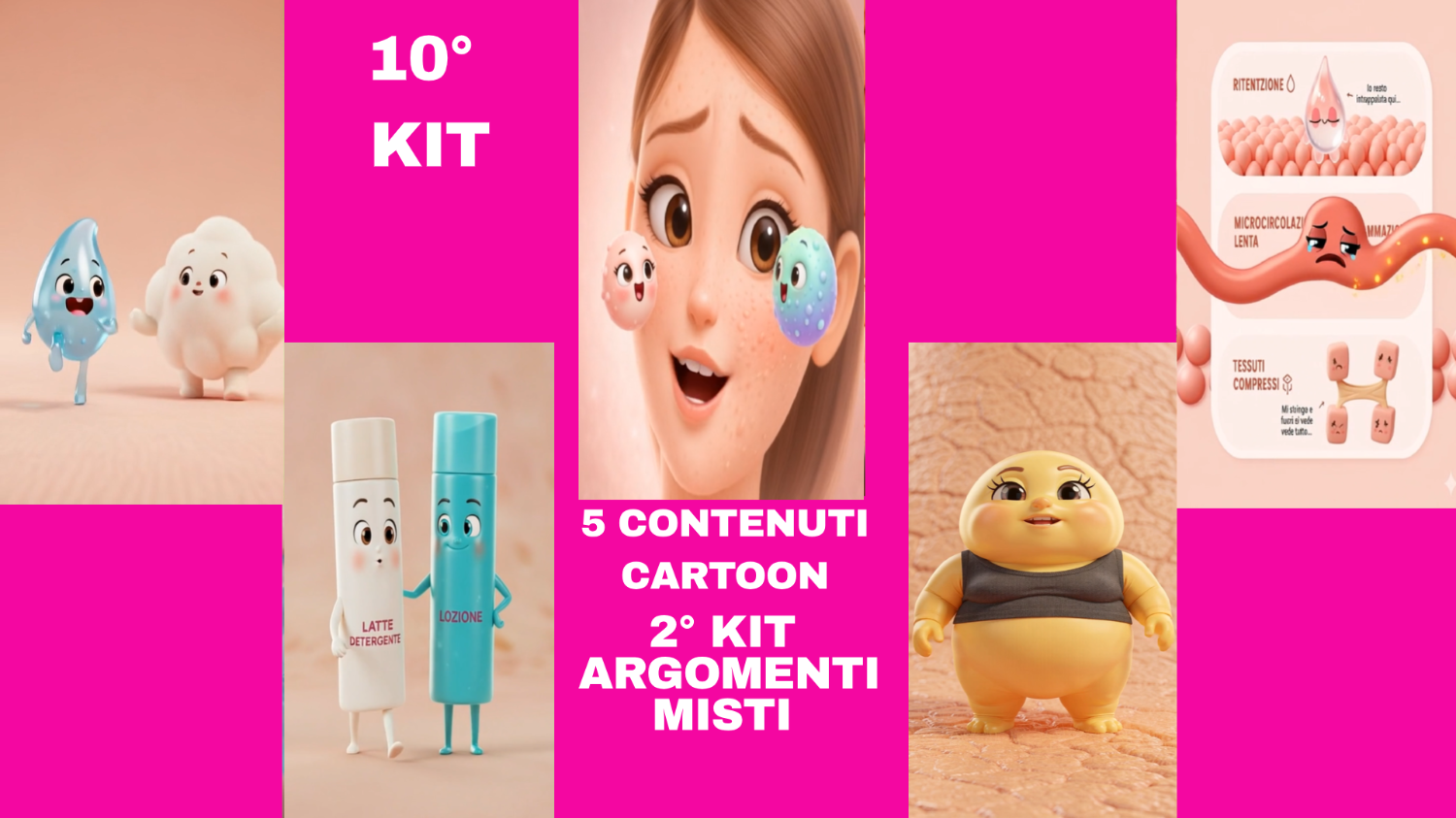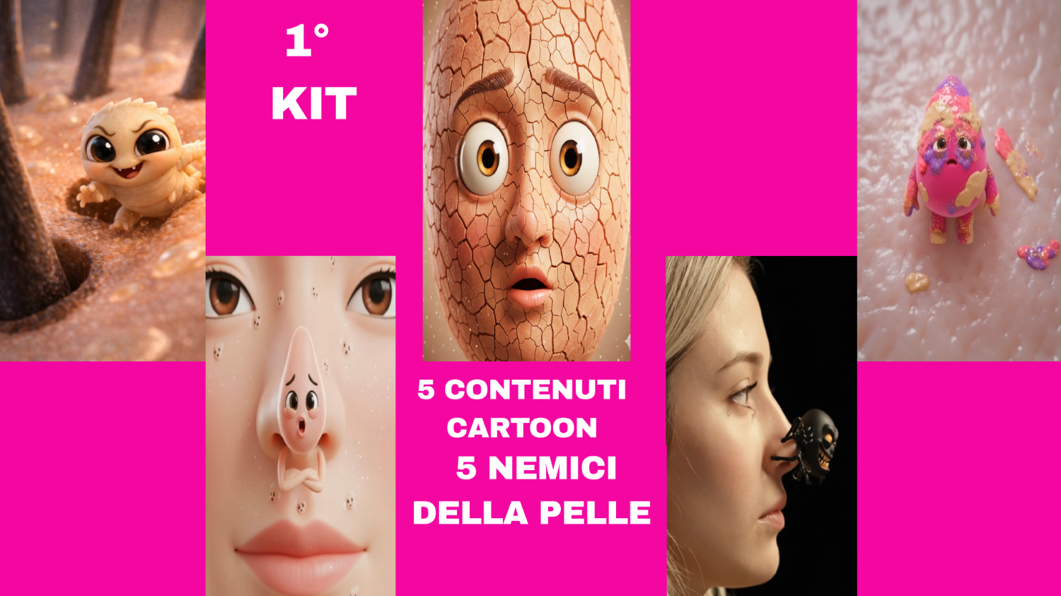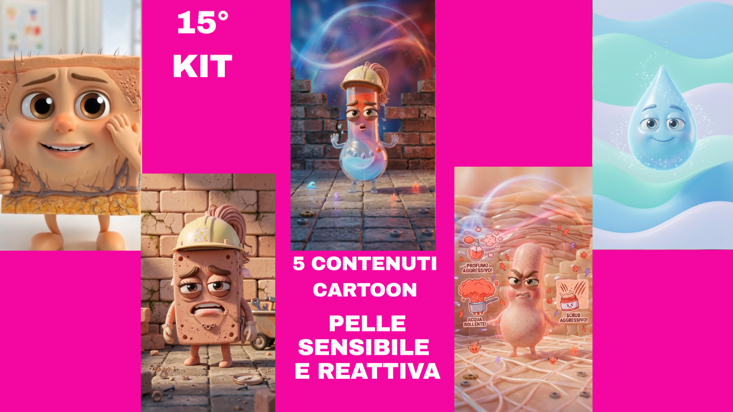 Ecco perché nasce questo kit: 5 video cartoon + 5 caption dedicati ai problemi più comuni del viso — Demodex, pelle sensibile, poro dilatato, comedone e spugnetta make‑up. Un format che sta letteralmente spopolando online tra estetiste e professioniste del beauty, perché unisce:
